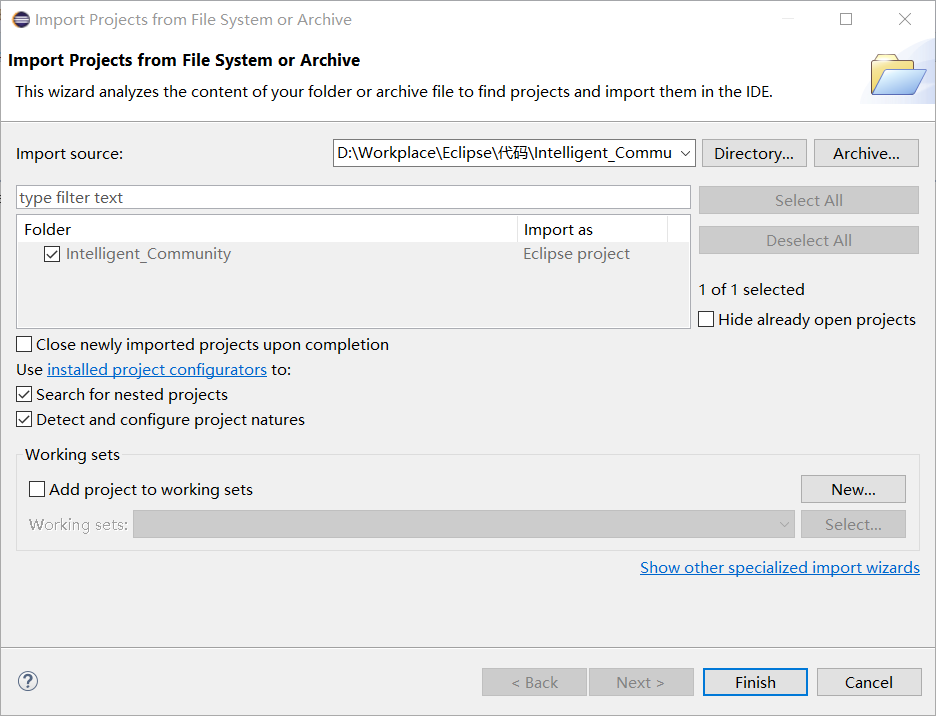 - 打开Eclipse, 导入项目=>右键File=>open Projects From System